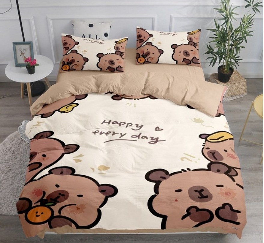 사계절 사용 가능한 부드러운 차렵이불과 침구 세트입니다.