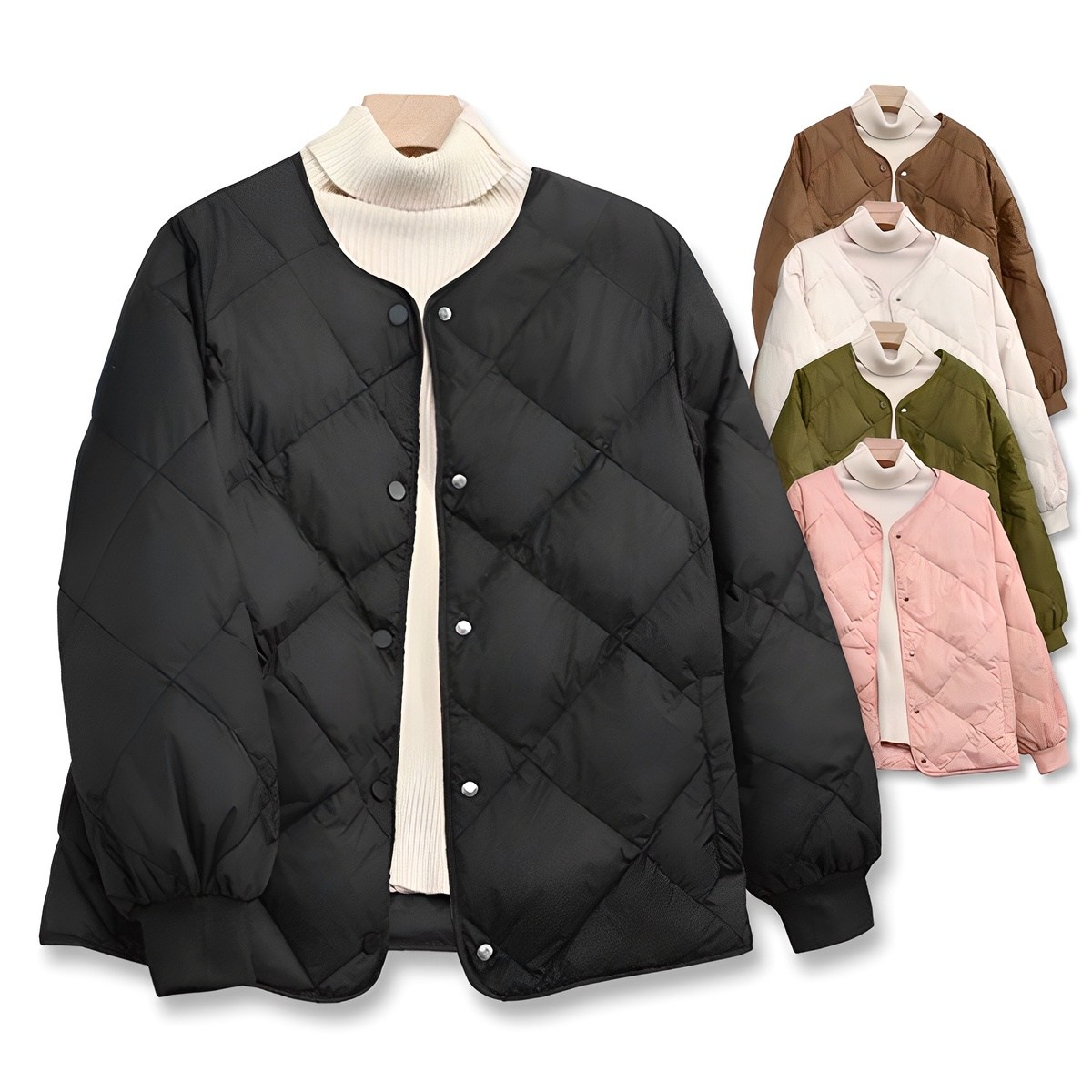 라운드 넥과 가벼운 무게로 데일리와 겨울철 외출에 적합한 여성용 경량 패딩입니다.