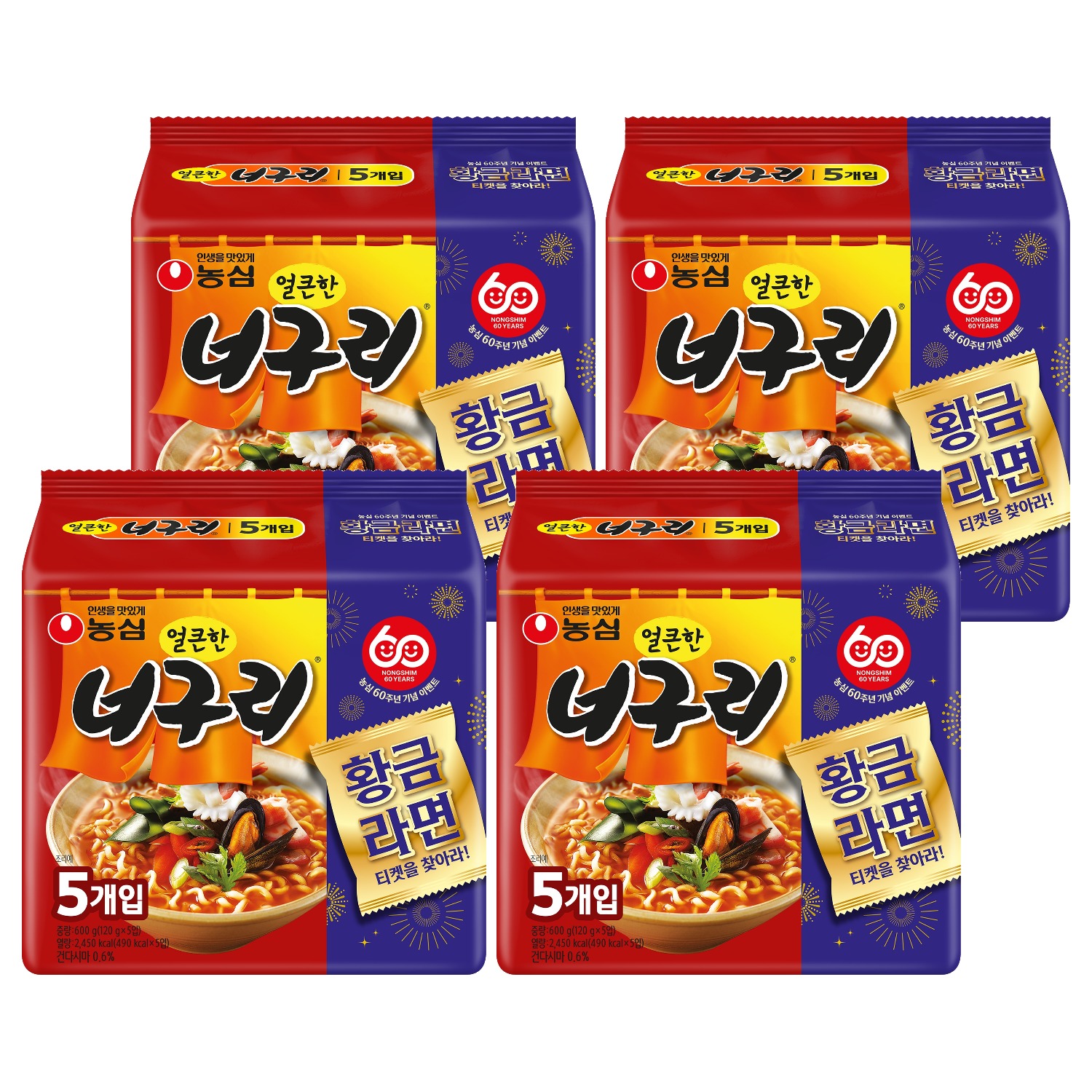 매운맛과 순한맛 두 가지 버전의 너구리 라면으로, 용량은 120g이다.
