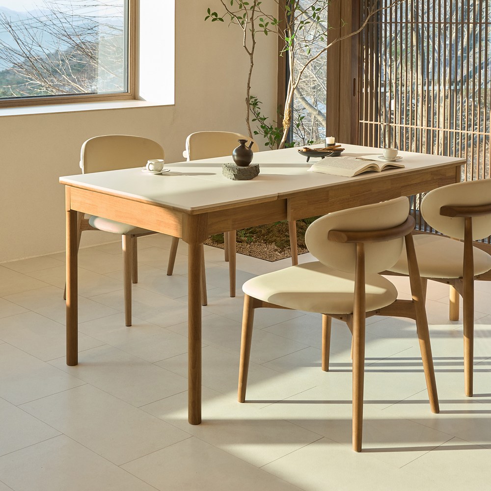 원목 소재의 확장형 세라믹 식탁으로 4인부터 12인까지 사용 가능하다. 크기 조절이 용이하며 세련된 디자인이 특징이다.