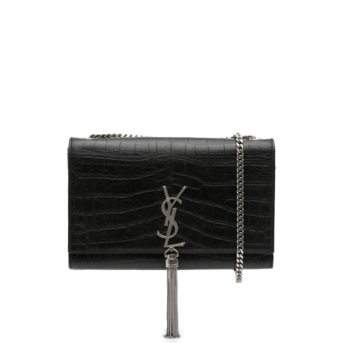 생 로랑 중고 2016 미디엄 크로커다일 엠보스드 레더 케이트 태슬 크로스 백