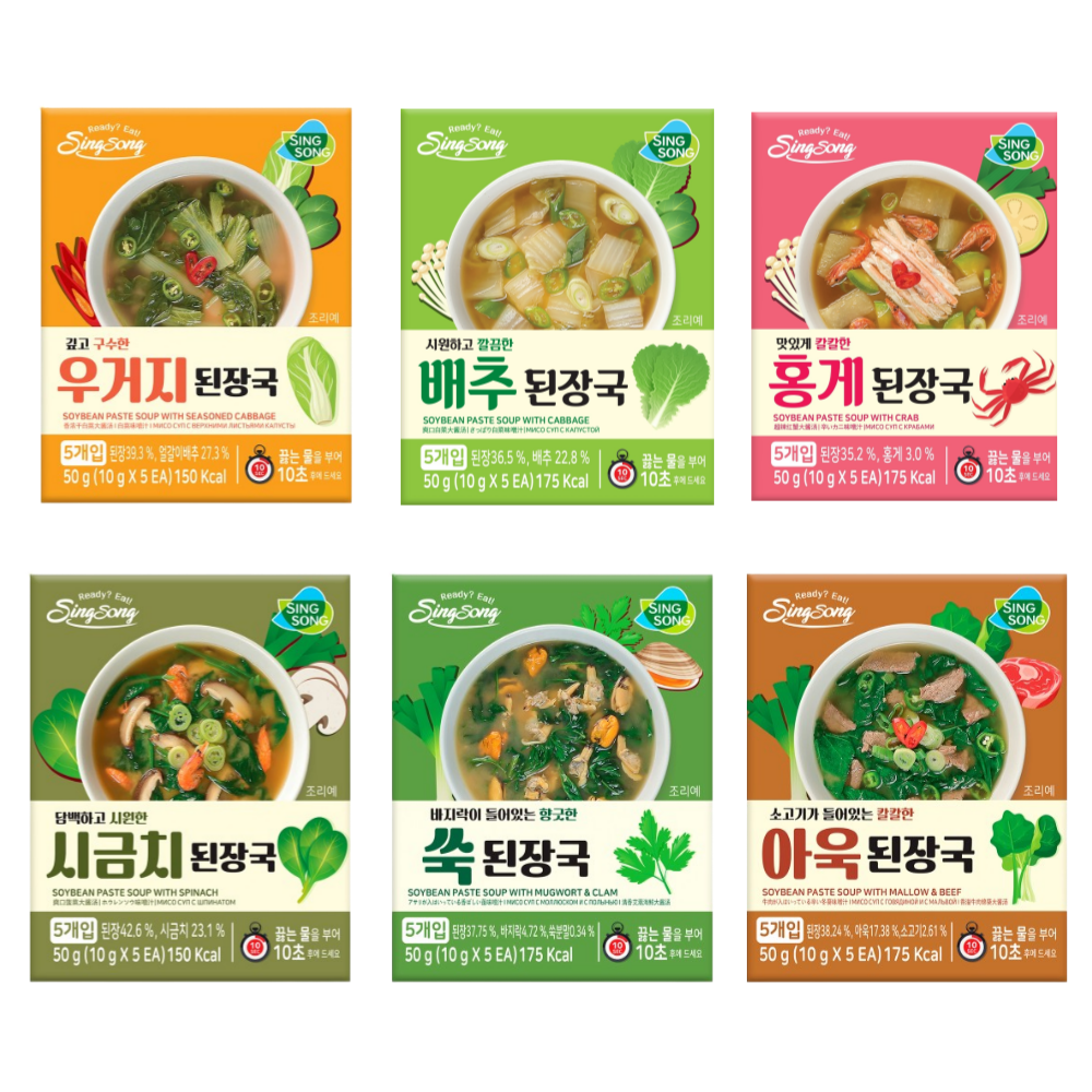 이 즉석국 세트들은 영양 밸런스와 건강을 고려한 다양한 메뉴 구성이 특징입니다. 예를 들어, 미역국, 무국, 된장국, 육개장 등은 각기 다른 영양소를 제공하며, 특히 해조류와 채소가 풍부한 국물들은 몸에 좋은 성분들이 가득 담겨 있습니다. 이렇게 다양한 메뉴를 한 번에 경험할 수 있어 건강한 식사를 쉽게 챙길 수 있습니다.