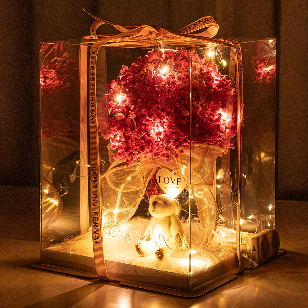 프리저브드 안개꽃과 LED 조명으로 특별한 기념일을 축하합니다.