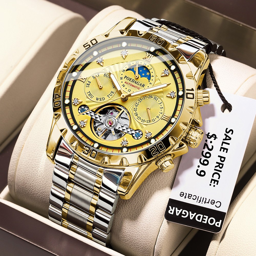 고급 자동 기계식 남성 시계로 방수와 야광 기능이 뛰어납니다.