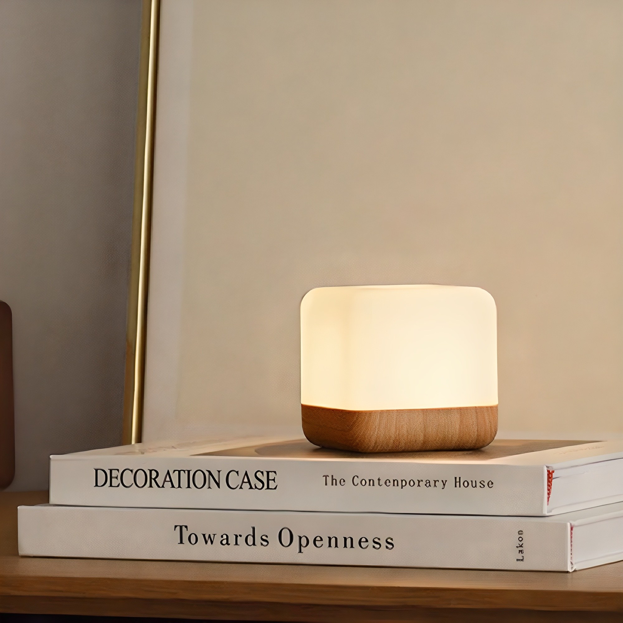 뒤집으면 자동으로 꺼지는 안전한 수유등. 우드 + 주광색 디자인.
