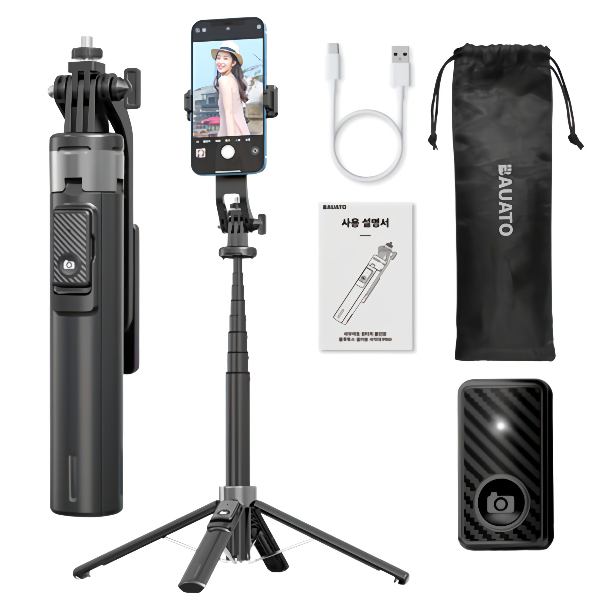 바우아토 미니 초경량 광각 촬영 모드 원터치 사각 거치 블루투스 셀카봉 삼각대 140cm