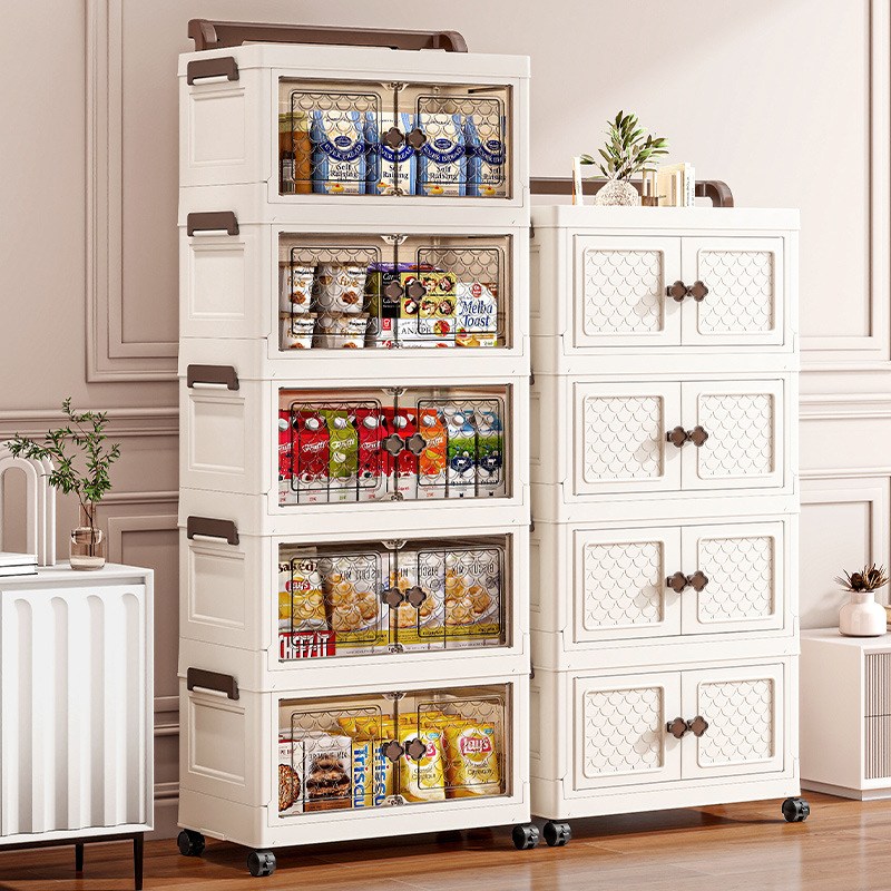 Kleeno 접이식 설치 면제 양문 수납장 3단 4단 5단 이동식 다용도 수납장 가정 베란다 거실용 수납장 간식 장난감 수납장 리빙박스 정리함 수납함
