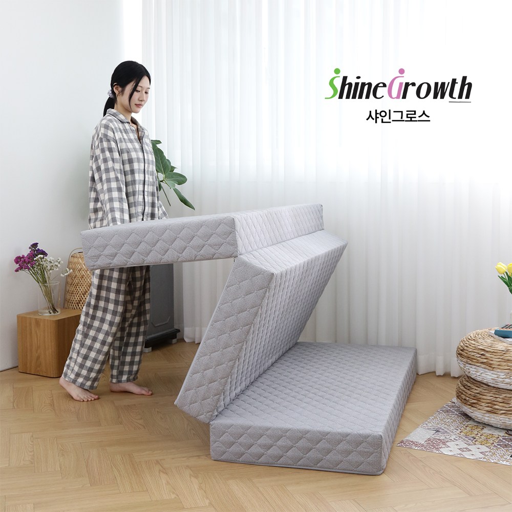 샤인그로스 (생활방수/항균) 3단 접이식 매트리스 HR폼 허리탄탄 아침개운 100% 국내산