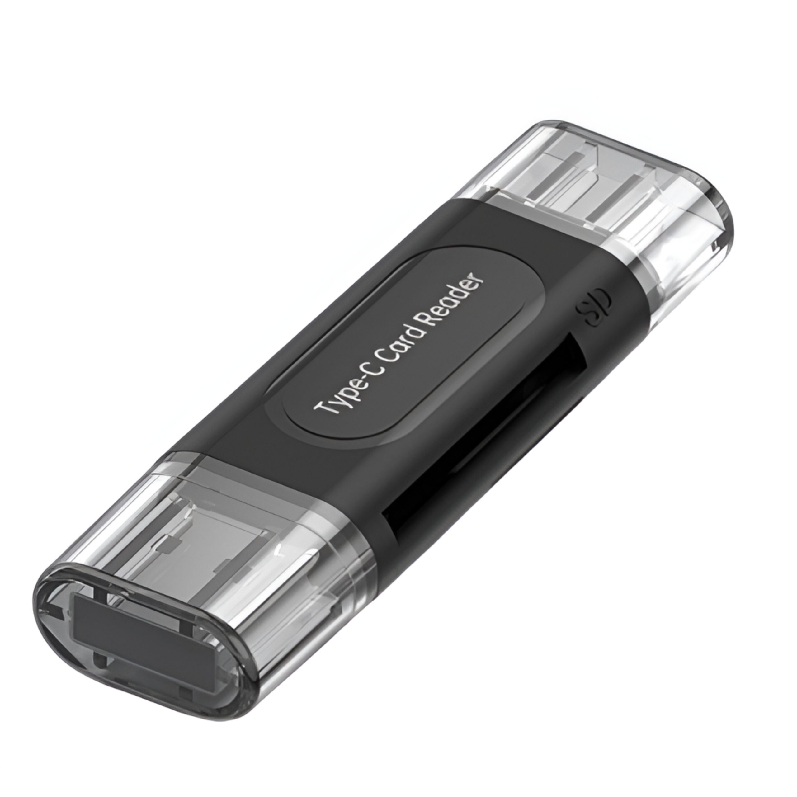 C타입 연결의 초고속 SD카드리더기. 블랙색상으로 빠른 데이터 전송이 가능하다.