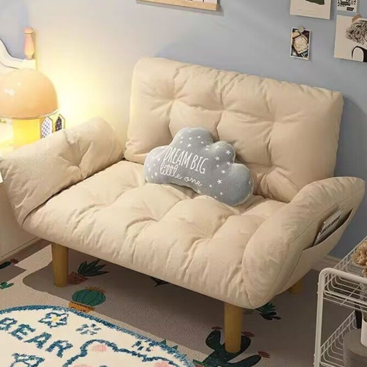 작고 간편한 접이식 소파로 1인 또는 2인용 좌식용입니다. 실내 공간 활용에 적합합니다.