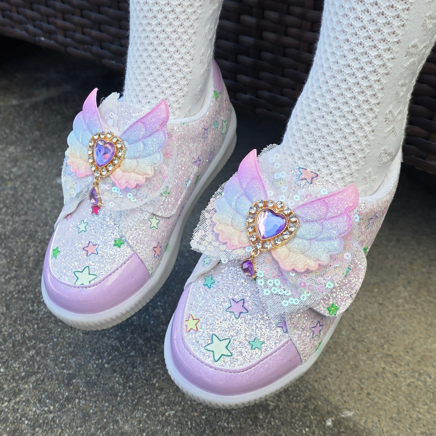 무지개 날개 LED 조명이 특징인 여아용 운동화입니다. 귀엽고 밝은 디자인으로 아이들이 좋아합니다.