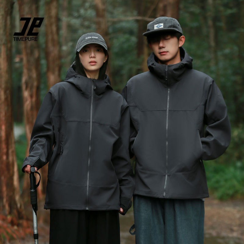방수와 방풍 기능이 있는 트렌디한 공용 후드 점퍼다.
