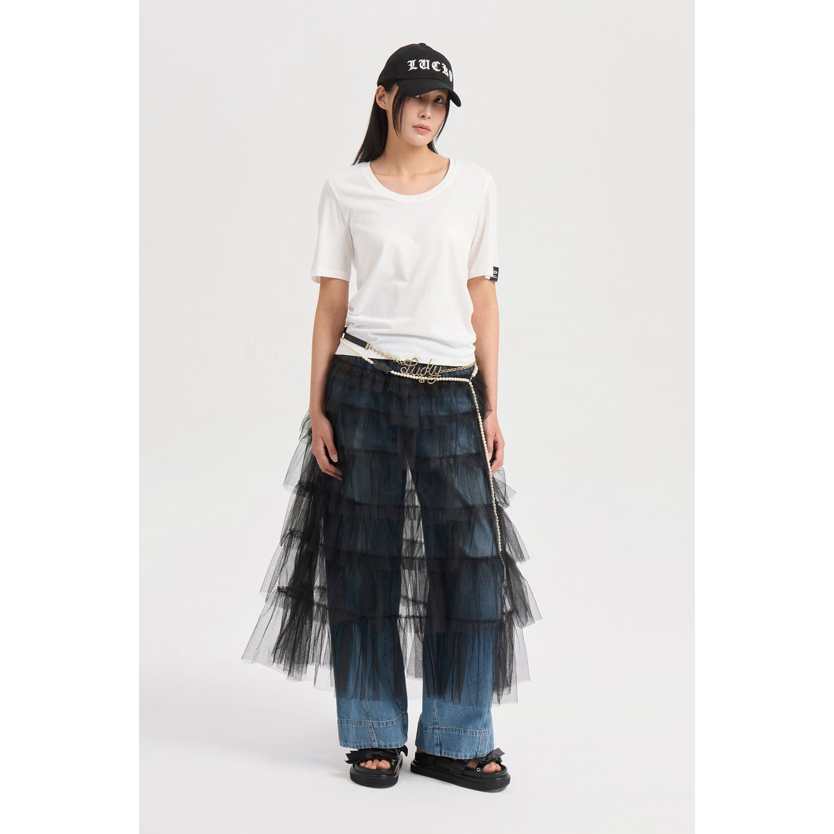 [백화점 정품] 럭키슈에뜨 반팔티셔츠 프릴 디테일 티셔츠 LQTAM25600 (온라인전용)