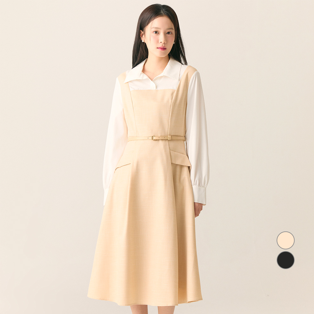 블라우스 세트로 구성된 깔끔한 뷔스티에 원피스.