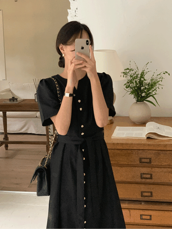 와이드 오픈카라 디자인의 우아한 원피스로 격식있는 자리에도 어울립니다.