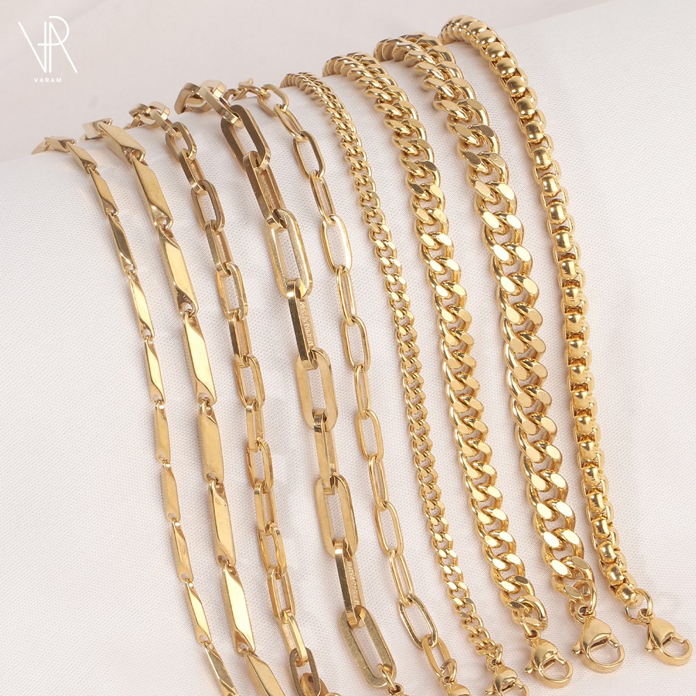 VARAM 써지컬스틸 체인 데일리 심플 골드 팔찌