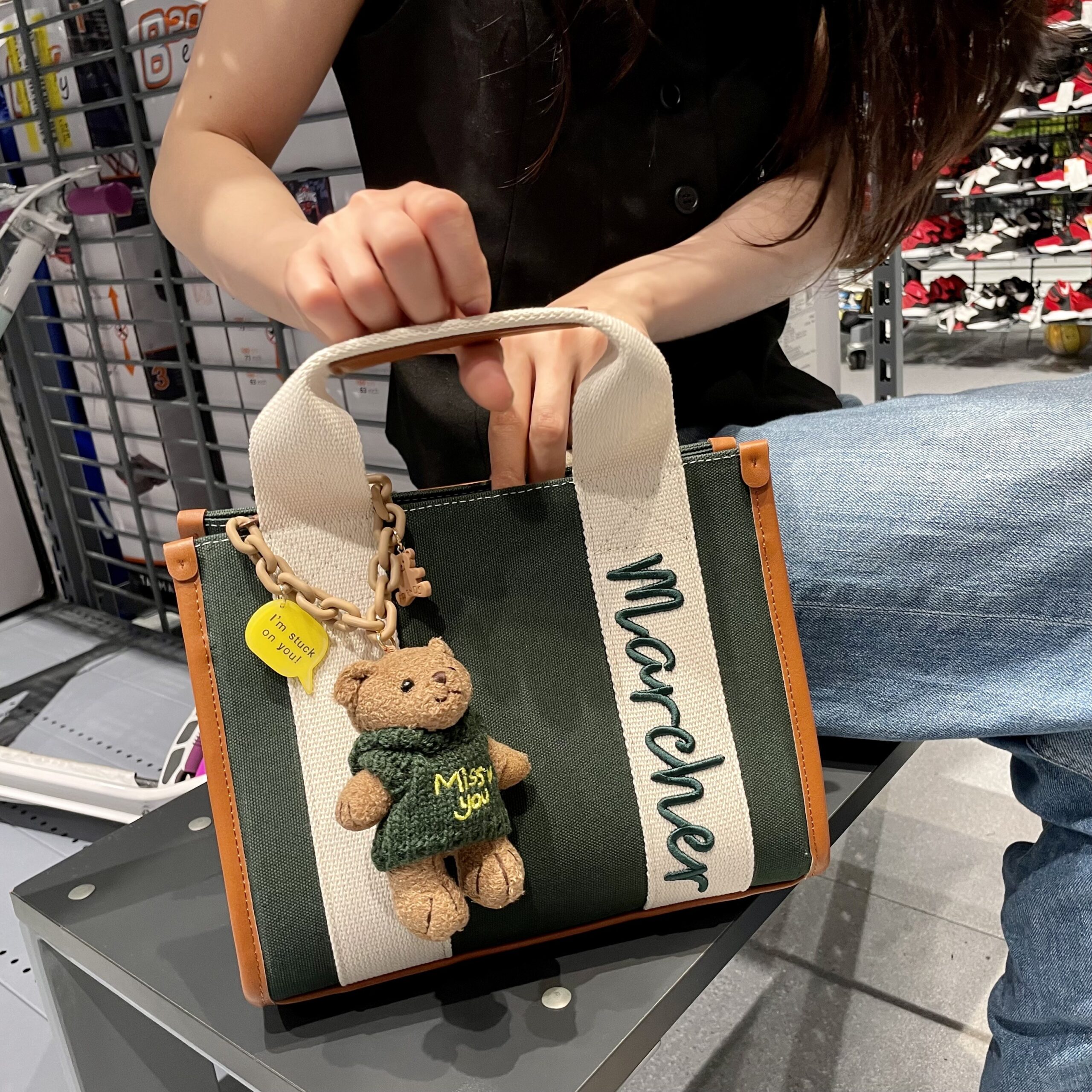 마르쉐 자수 토트백 크로스 캔버스 사각 손가방 골프 인스타패션