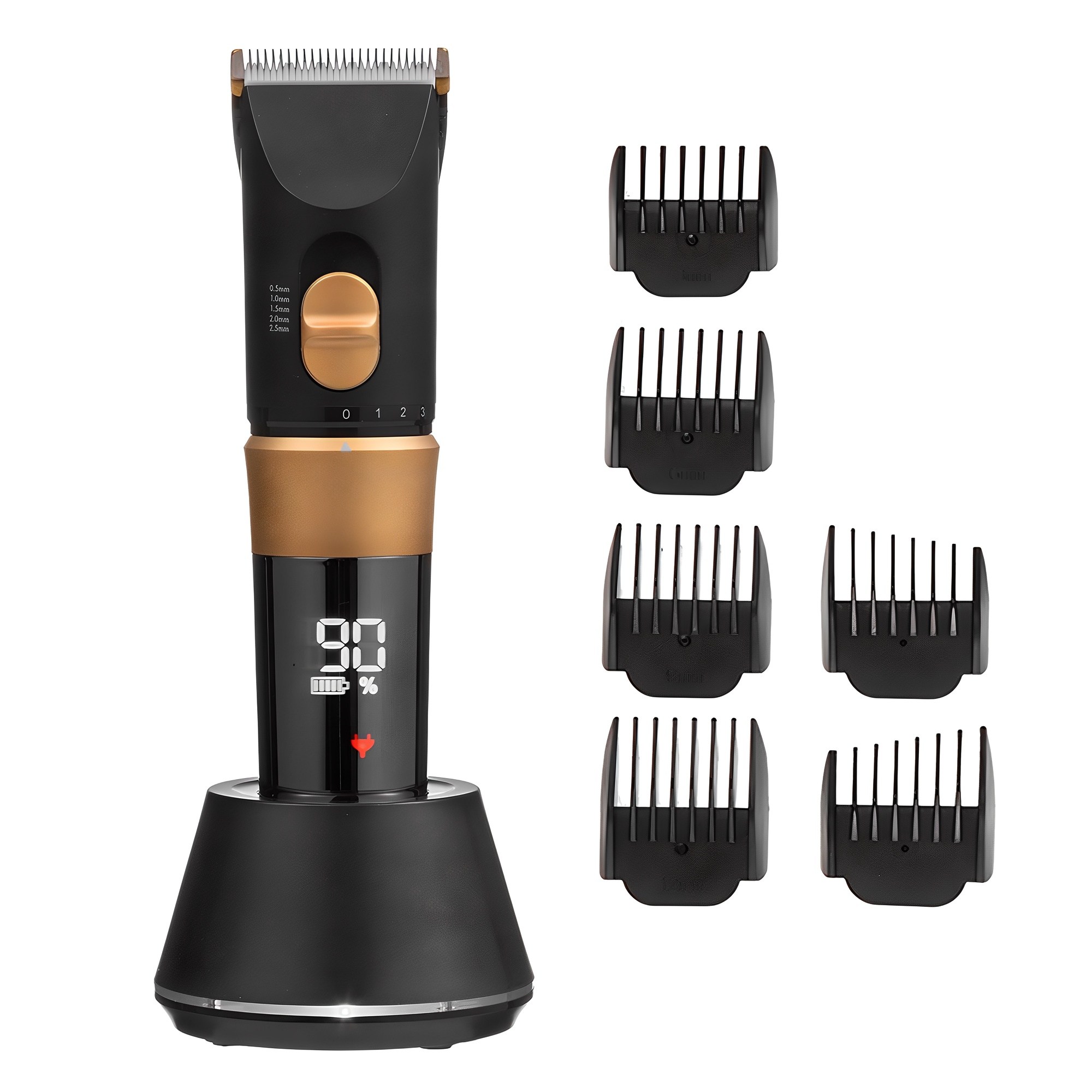 세라믹 블레이드와 LED 표시가 특징인 전문가용 이발기입니다.